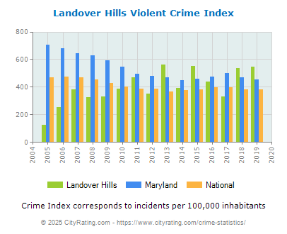 In 2019 the city violent crime rate in Landover Hills was higher than the