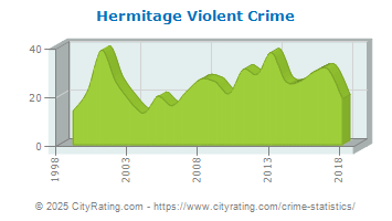 The city violent crime rate for Hermitage in 2018 was lower than the